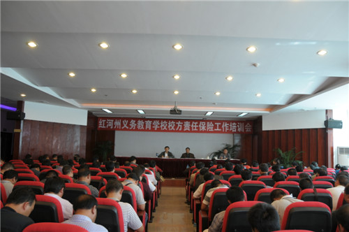 紅河州義務教育學校校方責任保險培訓會于2013年11月7日在建水縣昌源大酒店召開。所轄各縣市教育局負責校方責任保險工作的具體工作人員和各縣市鄉(xiāng)鎮(zhèn)中學、中心校校長參加了此次培訓。我公司客服部、重點客戶部培訓人員應邀參加了此次會議,并進行了培訓。培訓內(nèi)容包括:校方責任保險工作介紹、校方責任保險投保流程、索賠流程介紹、校園安全事故分析報告、自然災害應急處置能力培訓、學校食品安全監(jiān)管培訓等。