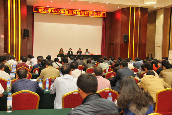 為進一步推進麗江市學(xué)校園風(fēng)險管理工作,根據(jù)《云南省教育廳關(guān)于舉辦中小學(xué)校園風(fēng)險管理培訓(xùn)班的通知》(云教函[2015]317號)文件精神,2015年9月22日麗江市教育局召開了中小學(xué)校園風(fēng)險防控管理培訓(xùn)班。麗江市各縣(區(qū))教育局分管安全工作的副局長及業(yè)務(wù)股(室)負責(zé)人;各鄉(xiāng)鎮(zhèn)中心學(xué)校校長;初中學(xué)校(含九年一貫制學(xué)校)校長;市實驗學(xué)校分管安全工作副校長;市特殊教育學(xué)校分管安全工作副校長;市民族孤兒學(xué)校分管安全工作副校長;麗江文林實驗學(xué)校分管安全工作副校長參加了此次會議。
